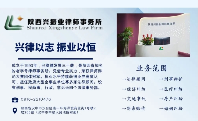 陕西兴振业律师事务所 电 话:0916-2210476 地 址:陕西省汉中市汉台区南一环海洋城商业街1号楼2层205室(汉中市中级人民法院对面)
